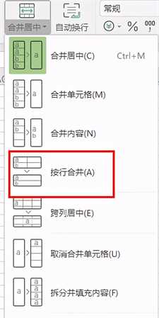 ②、选中3行2列,选择“按行合并”(或者跨越合并)