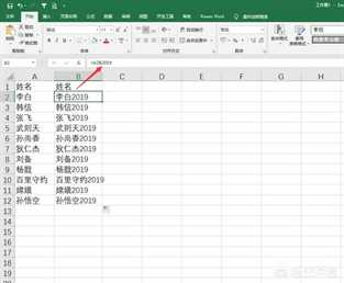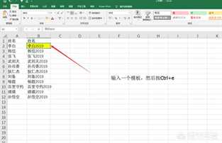 我们只需要旁边将数据的后面加上2019然后按快捷键Ctrl+e即可批量为名字后面添加2019