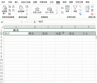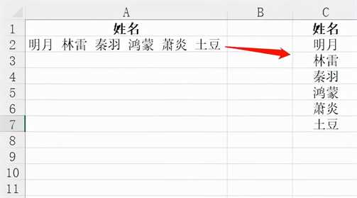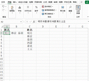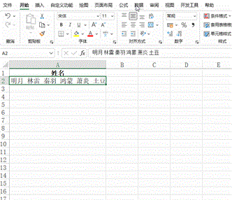 A2单元格的名字都是按空格隔开且都是两个字,将名字拆分到多行显示