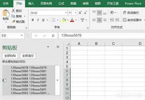 3)双击空白单元格,使单元格处于可编辑模式,在剪切板中点击要粘贴的项目,多行手机号就放到一个单元格了