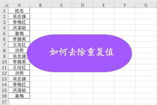 选中区域,点击插入——表格——数据透视表,在打开的列表格字段中,勾选“姓名”便可删除重复值。
