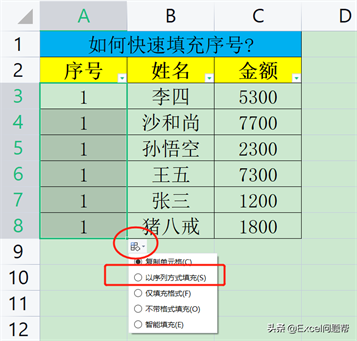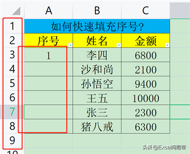 开篇之前,我们先来复习一遍最基础的直接下拉法。当然,如果还有一个个使用手工输入序号的朋友,我很佩服你的毅力,也请你一定要关注我,让我帮你释放更多时间!