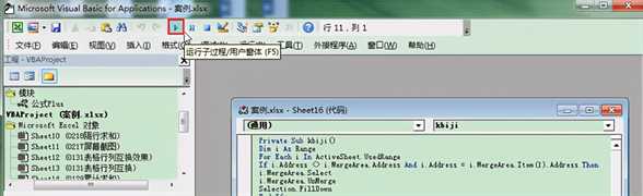 4.单击VBA编辑器窗口上方的“运行子过程/用户窗体”按钮。