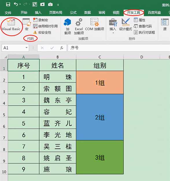 最佳答案实例展示如下图所示,将下面图1中C列“组别”列的所有合并单元格进行批量拆分,目标效果见图2。图1图2操作步骤:1.打开工作表,单击窗口上方“开发工具”选项卡“代码”功能组中的“Visual Basic”按钮。2. 在打开的VBA编辑器窗口左侧,找到“Microsoft Excel对象”列表中的“Sh......