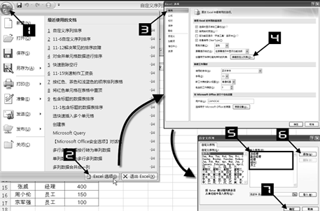 首先需要创建一个”自定义序列”,将”职务”高低的顺序信息传达给Excel,依次单击【Office按钮】→【Excel选项】,打开【Excel选项】对话框。