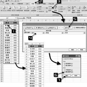 ● 对于相同笔划数的汉字,Excel按照其内码顺序进行排列,而不是按照笔划顺序进行排列。对于简体中文版用户而言,对”姓名”列使用笔划顺序来排序的方法如下。