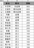 完成操作后,职工津贴表中的数据就会按照设定的”职务”顺序由高到低进行排列了,最终的结果如图所示。