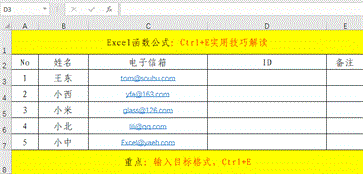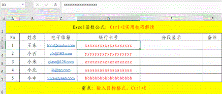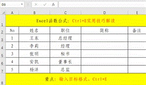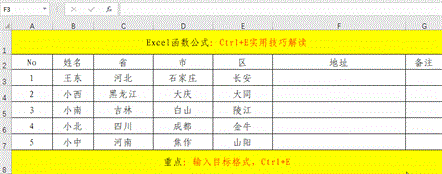 在实际的工作中,设置格式的地方非常的繁多,如果是大批量的,费时费力,比较麻烦,如果有一个类似于“格式刷”的快捷操作,我们只需“刷、刷、刷”应该是个不错的事情。其实,Excel早就替我们想到了此需求,只不过不是“刷、刷、刷”,而是“按、按、按”,此快捷键就是Ctrl+E。