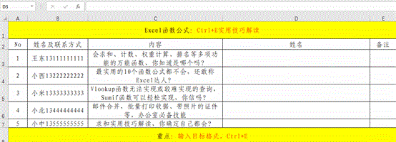 最佳答案方法:1、在目标单元格中填充{}中的内容,可以直接复制粘贴到目标单元格中。2、选定所有目标单元格,包括第一个已经有数据的单元格。3、快捷键Ctrl+E。解读:此方法实用于2016及以上版本,关于Ctrl+E的更多用法,请参阅下文。 1组快捷键解决9类格式设置,而且快速高效,你想知道它是谁吗......
