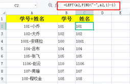 因为都有“-”,所以可以根据“-”号的位置来确定数字的长度,先用FIND函数来寻找,再用LEFT函数提取