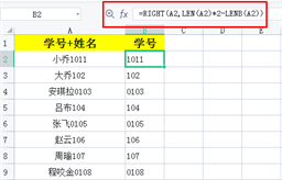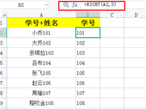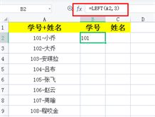 这种情况数据非常有规律,如图数字都在左边且是3位数字,只需要在B2单元格中输入【=LEFT(A2,3)】
