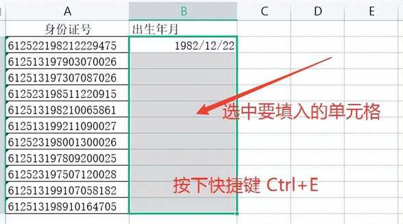 最佳答案1、如下图,我们想从左侧的这列身份证中提取出生年月。比如第一行,从身份证中可以读取出生年月是1982年12月22日2、在出生年月的这个下面填入1982-12-22,如下图3、选中需要向下填充的单元格,然后按住快捷键Ctrl E。如图:4、然后你就会发现下面的身份证中的出生年月均被提取出来了,而且都是......