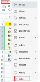 其次在单击左上角的【文件】按钮,单击【选项】;