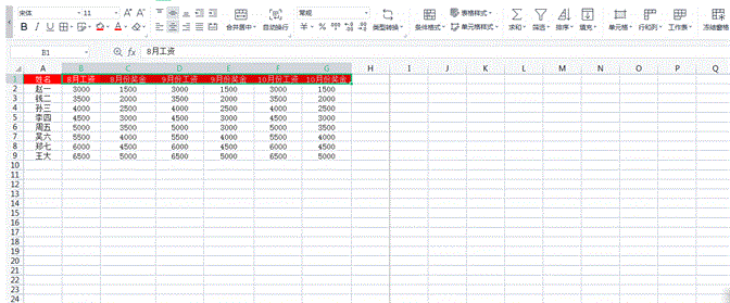 先来看一下我们的常规做法,如果我们想要只显示各个月份的奖金,我们就把工资行一个一个的删除。