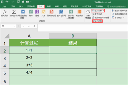 1.在“公式”选项卡“定义的名称”功能组中单击“定义名称”按钮。
