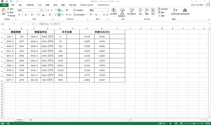 首先需要对这组数据进行四舍五入,这个可以通过单元格格式设置或者使用ROUND函数来解决,TEXT函数也不逊色哦,我们只需要输入公式=TEXT(A2,”0″),拖动即可。给既定的数据加上单位是常见的要求,该怎么操作呢,也很简单,公式如下=TEXT(C2,”0.0万元”),其中的0表示占位符,后面直接加上想要添加的内容就可以了。