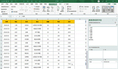 在【数据透视表分析】菜单栏下,选择【插入切片器】→勾选【地区】和【商品】→【确定】。