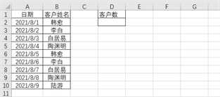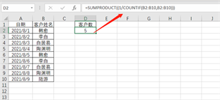 这里可以直接在单元格中输入公式=SUMPRODUCT((1/COUNTIF(B2:B10,B2:B10)))