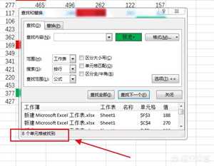 我们在查找框的左下方可以看到,8个单元格被查找到,所以这里绿色的填充色单元格就是8个,如下图
