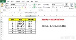 2、通过Eomonth函数返回对应日期在当月最后一天的日期只会,我们再利用Day函数来提取当前日期在一个月中的值就可以了。注意需要将格式调整为数值或者常规。如下图所示: