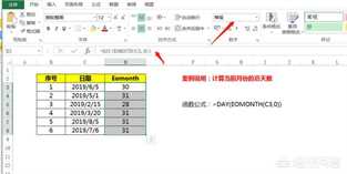 案例说明:利用Day+Eomonth函数返回当前日期所在月份的天数