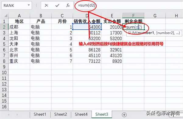 求和的小伙伴们肯定会想到sum函数,这期不仅仅是单一的求和,要算出每月盈利,在此基础上进行累积计算,所有我们要用到单元格的绝对引用。
