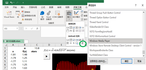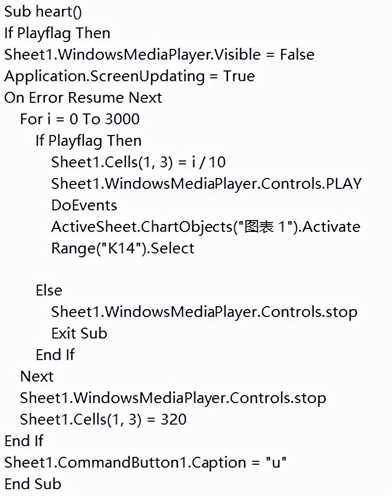 c.设置完成后可以将这个播放器放置在心形图底下,之后在VBE环境中添加如下代码: