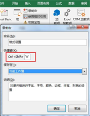 宏名等设置完成后,对选中的单元格或是单元格区域进行相应的设置,包括字体、字号、颜色、边框、行高、列宽的设置。