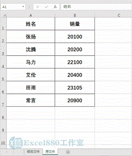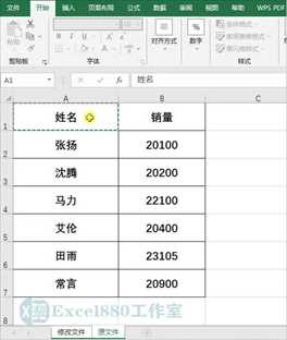 6、然后选择“原文件”中的A1单元格,如下图所示。