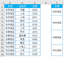 如下图所示,A列中区域有很多都是相同的,怎样批量合并相同单元格呢?效果如E列所示: