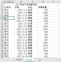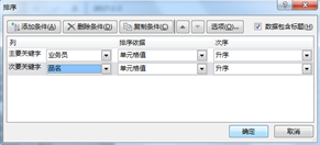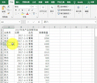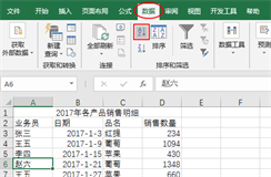 点业务员数据列中任意单元格,在【数据】选项卡下【排序和筛选】组中选择【升序】