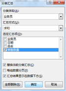【数据】-【分类汇总】,分类字段选择【业务员】,点【确定】