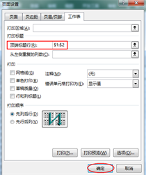 在弹出的【页面设置】对话框中选择顶端标题行,点【确定】