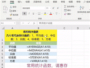最佳答案1、平均值:=AVERAGE(A1:A10)2、中位数:=MEDIAN(A1:A10)3、众数:=MODE(A1:A10)4、标准差:=STDEV(A1:A10)5、方差:=VAR(A1:A10)PS:平均值、中位数和众数是表现数据集中趋势的指标。平均值是N个数相加除以N得到的结果;中位数是一组数据......