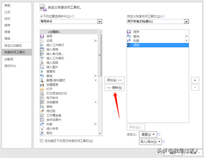 如果要从快速访问工具栏中删除某个选项,只需右键单击该按钮并选择“从快速访问工具栏中删除”。