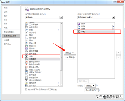 2、之后,选择要添加的命令并单击“添加”按钮。单击“添加”按钮时,您将在“快速访问工具栏命令”列表中获得该命令。