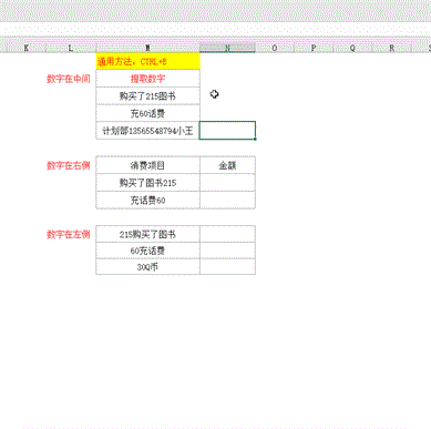 如果你对函数不太理解不熟悉,就使用最简单的方法快捷键CTRL+E,无论数字在哪里都比较通用的。操作如下动图。