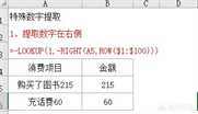 最佳答案方法1:使用函数当数字在文本的右侧,可以使用LOOKUP来提取,在B5中输入公式=-LOOKUP(1,-RIGHT(A5,ROW($1:$17)))lookup函数语法=lookup(查找值,查找区域,返回结果区域)而这里是lookup函数的特殊用法第一参数:查找值为1查找区域:-RIGHT(A5,......