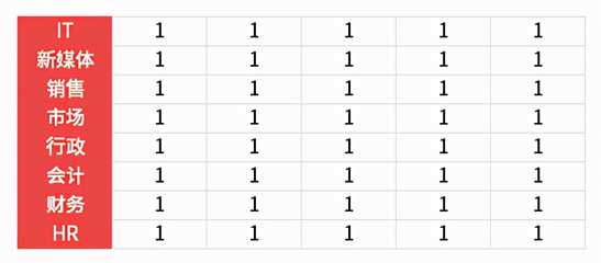 首先我们要根据不同的职业,建立一个以1为基础的数据源。