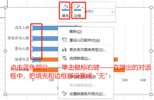 7、点击选中”蓝色”部分——点击鼠标“右键”——在弹出的对话框中把“填充”和“边框”都设置成“无”。