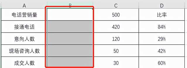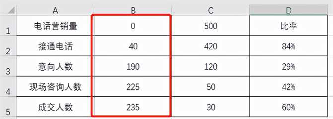 1、首先要想得到上图所示的“漏斗图”先要在表格中插入一列“B列”