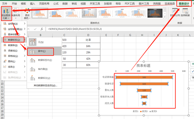 举例:我们要想在漏斗图中添加上数量,按下图操作就可实现: