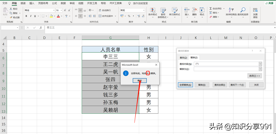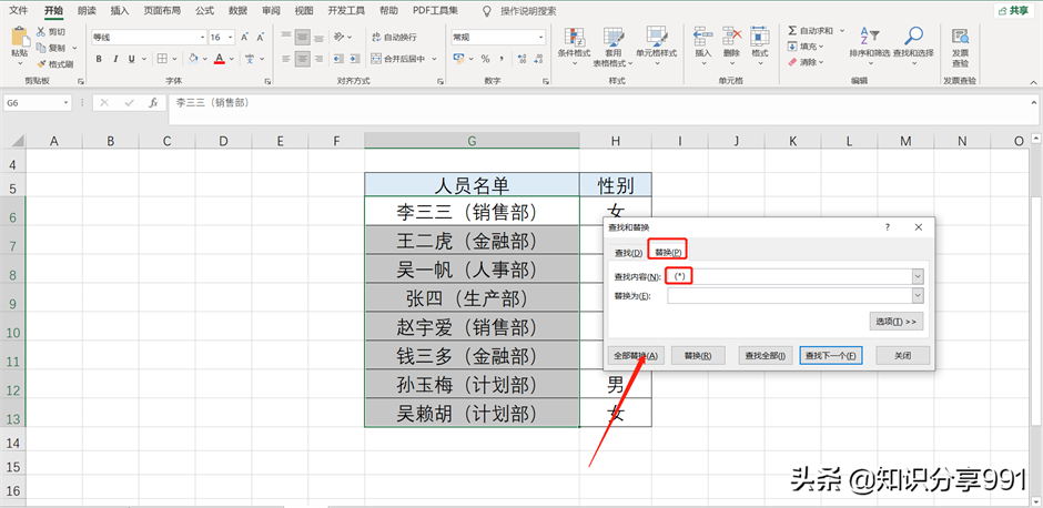 以上设置完成后,人员名单中带括号部分就全部一起被删除掉了。这就是利用通配符快速批量删除内容的小技巧。