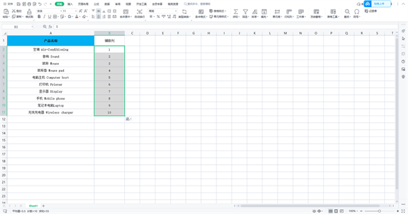- 首先我们打开数据表,并在数据表后面插入一行辅助列,然后我们在辅助列,将现有数据进行排序,这里我们现有数据的序号是1-10。