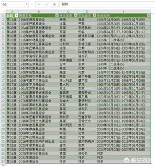 公式:=VLOOKUP([届数],奥运会[#全部],4,0)