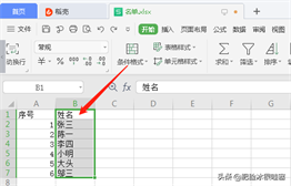 第一步:打开学生名单excel表格,选中你需要排序的那一列,如姓名,专业等。