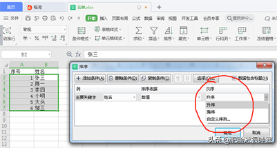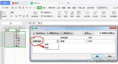 第五步,排序主要关键词是根据我们需要排序的信息填写,如姓名。
