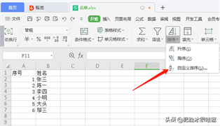 第二步:接下来要用到的是排序工具,可以对选择的数据按升序或降序排序。