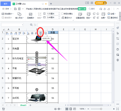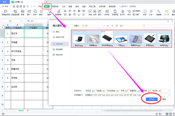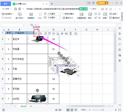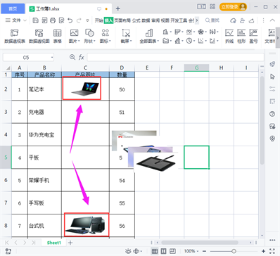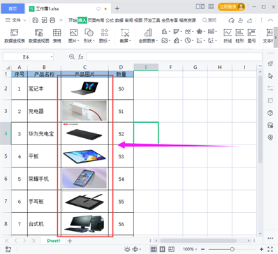 (5)把产品图片文件夹中的图片插入到表格中,如下图所示。