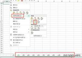 2、按Ctrl+A快捷键,选中表格数据单元格区域,并复制,再按Shift键,选中2月-12月工作表,鼠标移到表格里,右键-【选择性粘贴】-【保留源列宽】,即把1月工作表的表格全部一次性粘贴至2月-12月工作表中,并保持原来的列宽不变。